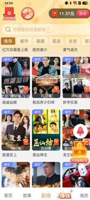 1. 拥有超多短剧分区,故事剧场等各类短剧应有尽有,看剧就能领红包。
