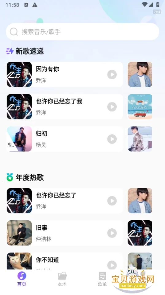 4. 能一键扫描本地音乐,通过歌名、歌手或歌词片段快速定位心仪音乐,支持离线下载。