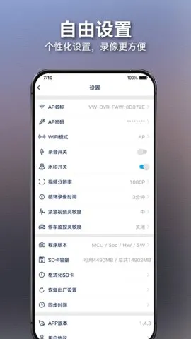个性化定制:用户可根据自身需求调整记录仪的参数,如循环录像时间、录像分辨率及紧急视频灵敏度等,满足多样化需求。