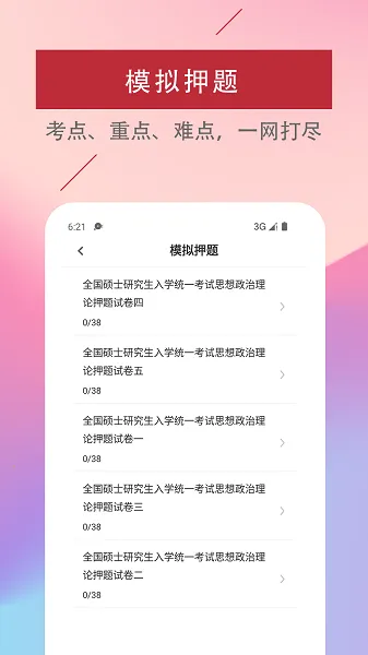 考研政治易题库是专为考研学子打造的政治学科类 APP,有历年真题及答案解析、政治 1000 题等,按考点划分章节练习,具备高效刷题、模拟考试、错题库等功能,助考生查漏补缺,掌握答题要点。