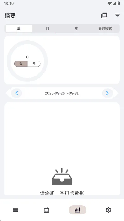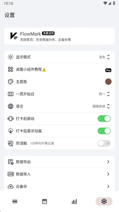 1. 极简设计哲学:界面仅保留打卡、统计、设置三大核心模块,无社交、无商城、无冗余装饰。采用MaterialYou设计语言,深色模式自动适配系统,回归工具软件本质。