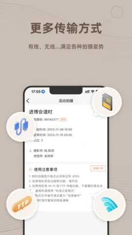 2. 多方式传输:支持多种分辨率原尺寸大图RAW格式和视频素材传输,多图多线程断网自动续传。