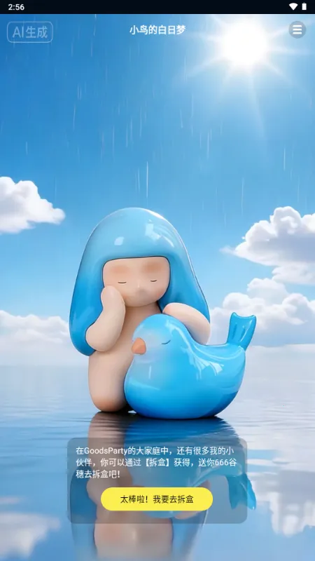 GoodsParty为二次元爱好者打造独特体验。它把潮玩文化与虚拟互动巧妙融合,有百款正版授权虚拟盲盒,能随心抽取享受乐趣。这里的潮玩手办不仅可收藏,还能AI陪聊,提供多种互动功能。登录方式简单,拆盲盒步骤清晰。软件功能丰富,像正版授权盲盒、潮玩变AI陪聊等。更新日志显示不断优化,新增签到领奖励免费拆盒等。对于二次元潮玩爱好者来说,是个值得探索的有趣世界,能带来别样的潮玩体验。
