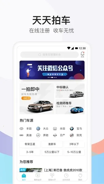 4. 车源智能推荐,根据用户历史出价记录,在拍车结束前两小时推荐热门车源。