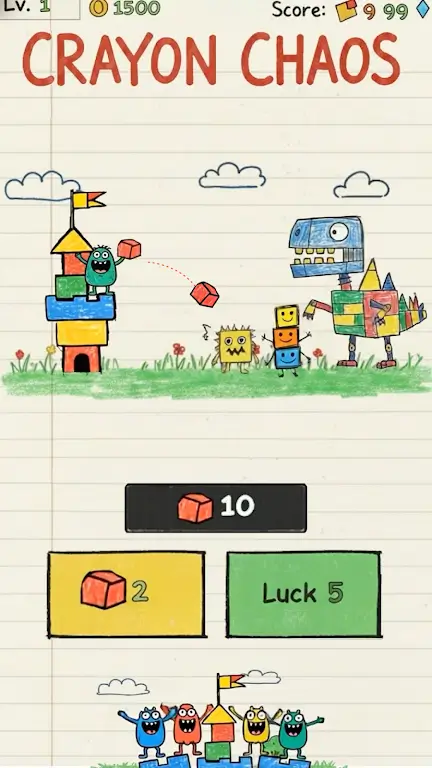 1. 蜡笔风格视觉盛宴:采用亮丽多彩的蜡笔手绘风格,置身色彩斑斓的涂鸦本,可爱画面与刺激战斗并存,彩色线条让战斗更惊心动魄。