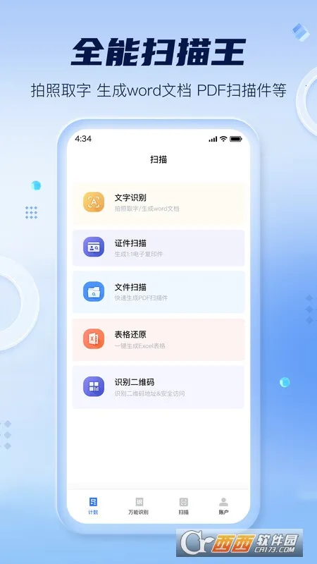 扫描计数全能王2025官方最新版本是专业扫描计数应用,能识别图片文字一键整理成文档。采用智能AI拍照计数,可识别多种物体,有万能识别、扫描计数、文字扫描等功能,操作简单,AI模型持续更新,还修复了已知bug。