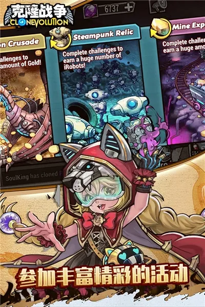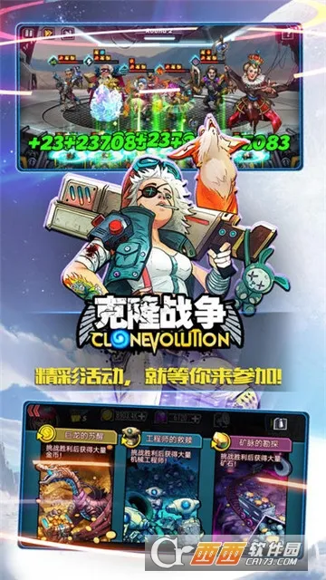 2、多线养成,打造个性英雄:装备与芯片双系统助力克隆军团。趣味装备免费获取,集齐套装有额外加成;百种芯片随意搭配,可创造独一无二的英雄属性,让玩家根据喜好培养强大英雄。