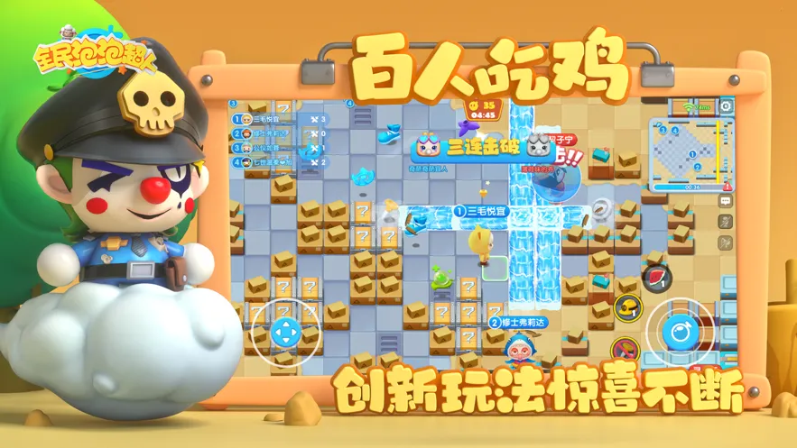 全民泡泡超人是一款超有趣的休闲竞技游戏。它画面精美,采用Q版卡通风格,色彩鲜艳且清新可爱,人物角色超萌。玩法简单易上手,有经典的泡泡对战玩法,还能联机对战。不仅有海量关卡,还有多种角色可供解锁,每个角色都有独特技能。游戏模式丰富,像经典泡泡对战、吃鸡大逃杀等。此外,它还有社交互动系统,能和小伙伴一起玩。无论是想休闲放松还是挑战竞技,全民泡泡超人都能满足你,玩过就可能爱不释手。