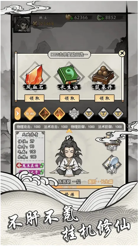 《带着开挂系统去修仙》是一款水墨画风的修仙游戏,玩法丰富。它以放置类玩法为主,无需复杂操作,挂机就能提升等级。游戏涵盖炼丹炼器、师门任务、药田管理等多种修仙活动,还设有多方势力与种族纷争。玩家可自由分配属性点,选择不同开挂方式影响修炼,解锁珍稀法宝与强大法术,从炼气期一路修炼到化神期。游戏画面简单但玩法精彩,不肝不氪,是日常休闲的理想选择,能让玩家轻松体验独特的修仙之旅,感受完整的修真历程。