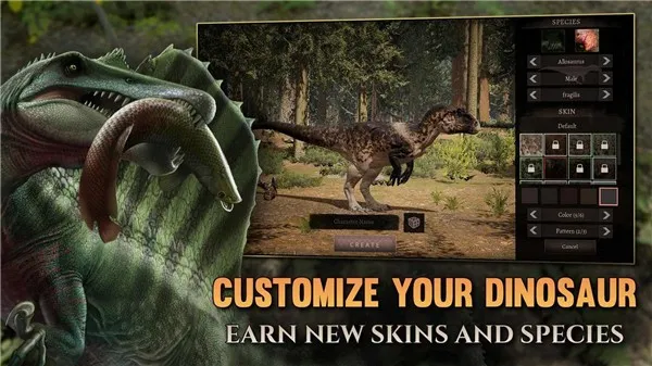 3 能自由定制恐龙皮肤,解锁战斗能力,打造独特角色。