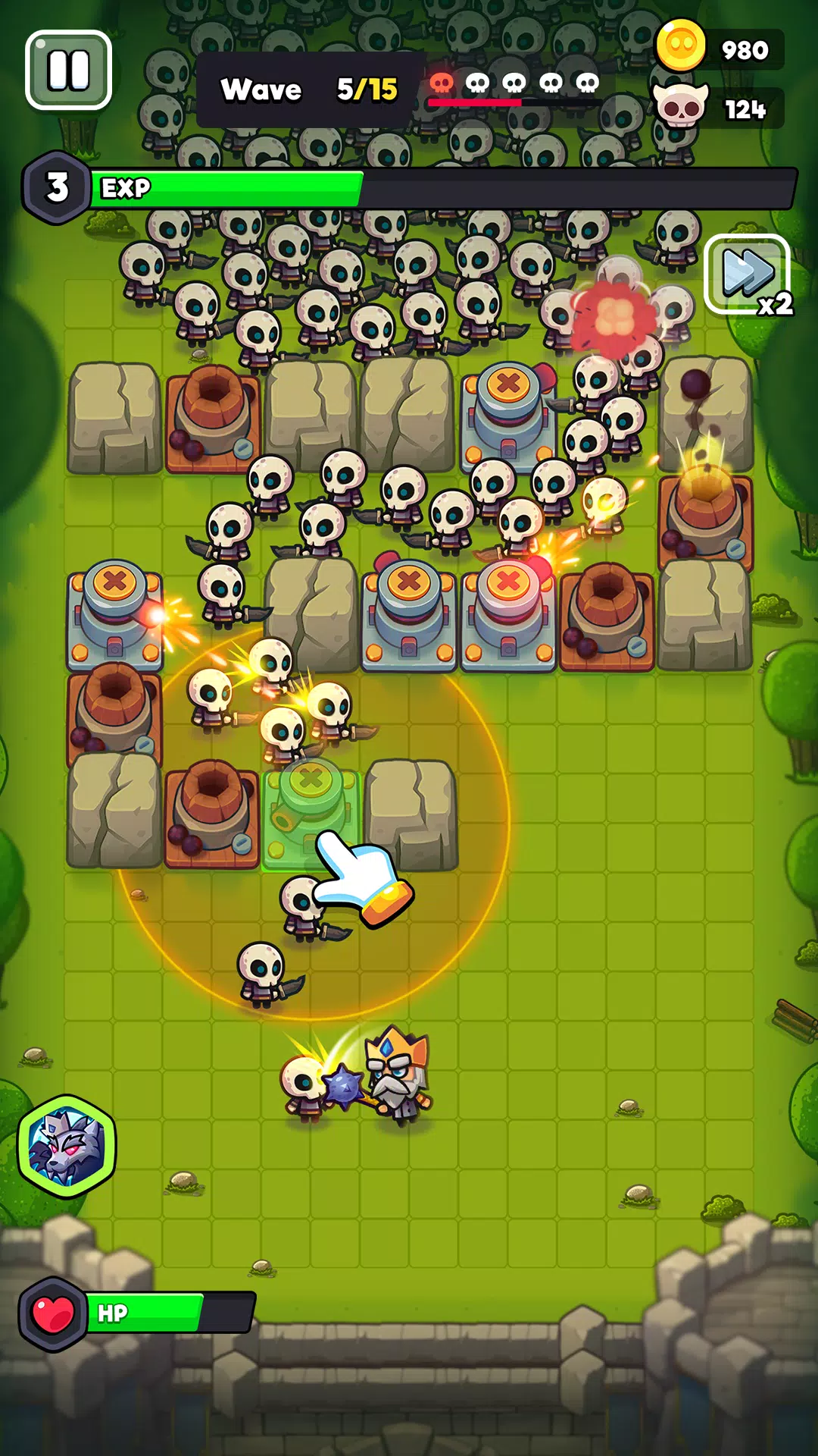 4. 简单易上手的操作:操作简单易上手,趣味塔防机制带来意想不到的乐趣体验。通过滑动屏幕控制角色,炮塔自动开火,轻松应对敌人。