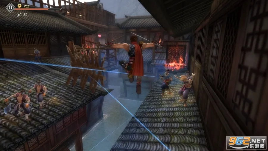 2. 能不断提升战斗技能,强化招式,购买精良武器和道具,以跳跃攻击对付高大敌人。