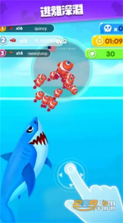 2、鱼群壮大与竞争:体验鱼群逐渐壮大的过程,同时要面对其他玩家竞争,增加游戏紧张感。