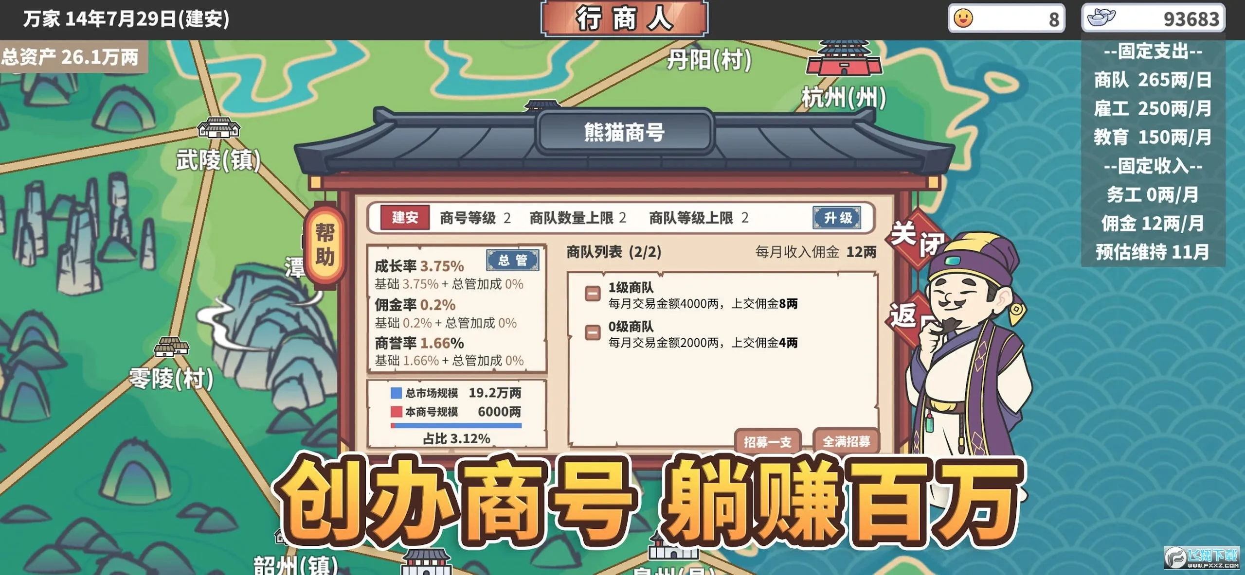 可强化商队,增加人数,提升载货量,使每次交易获更多利润。