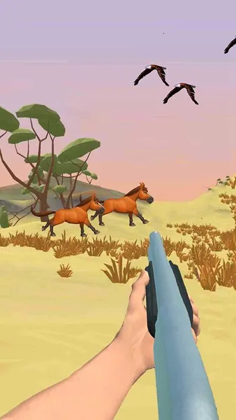 3. 独特画面风格与视角:采用Lowpoly画面风格,在带来流畅游戏体验的同时有着不错的画面表现。第一人称视角增加了游戏的真实性和沉浸感,让你仿佛置身于真实的狩猎场景之中。