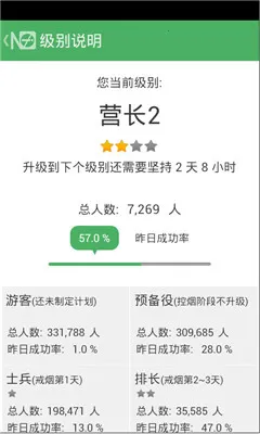 2. 可根据戒烟时间升级级别,全军事化规则,充满成就感,助您更有信心戒烟。