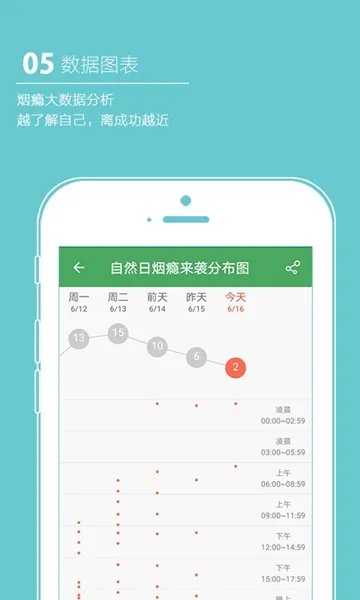 4. 能记录并控制每日抽烟数量,通过精确图表分析和数据统计,让您清晰了解吸烟情况。