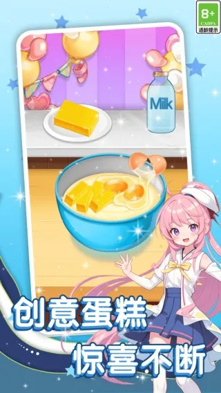1 以美食蛋糕为主题,围绕制作全流程设计玩法,体验从原料到成品的完整创作,充满生活气息。
