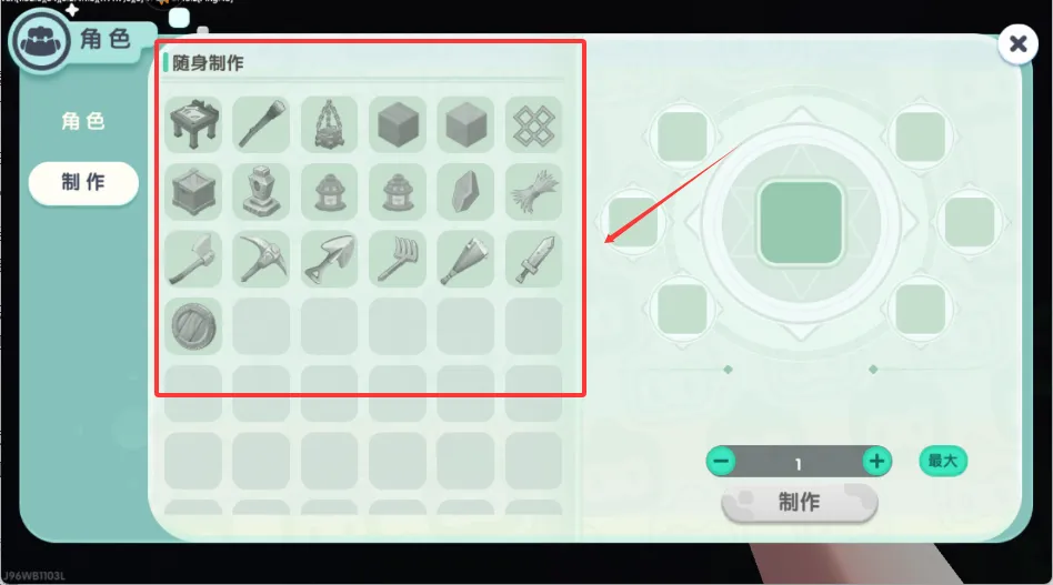 2、进入游戏后,如果想自己制作物品,就打开“随身制作”界面。左侧展示了各种可制作的物品分类,从工具到家具应有尽有。