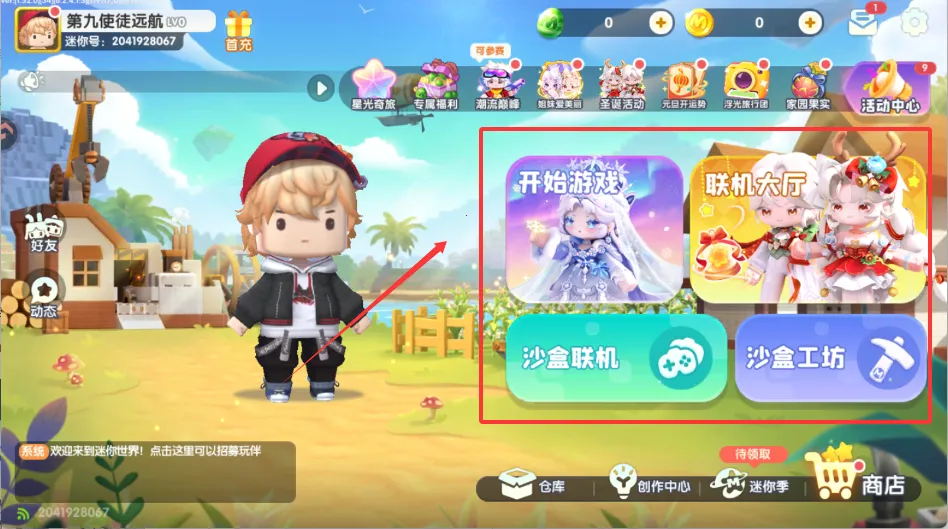 1、找到右下角那个显眼的黄色“进入游戏”按钮,点击它就可以开始你的迷你世界之旅。如果忘记账号,可以点击右上角的“找回账号”按钮。
