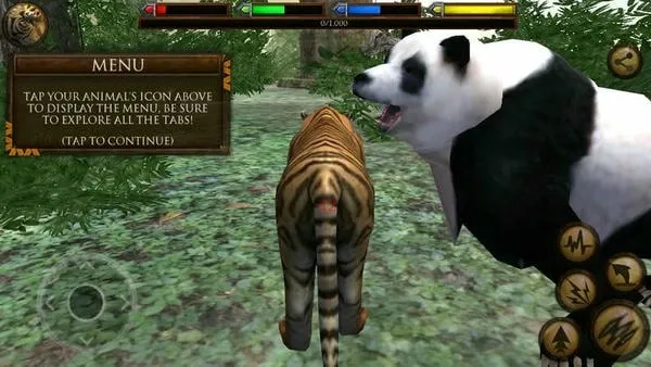 3. 成长与繁衍系统:可从幼虎成长为森林之王,建立自己的虎群并培养后代,延续强者血统。还能抚养孩子,让宝宝成长为家庭中有权势的一员,在婴儿幼时照顾他们,为其寻找食物。