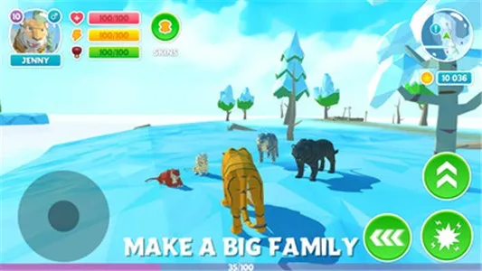 3. 可创建家庭,生儿育女,与家人一同狩猎动物,升级老虎及家庭成员。