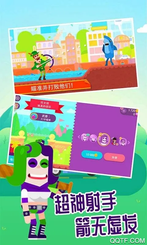 3. 自由角色与皮肤选择:玩家可选择自己喜欢的角色,角色或弓箭的皮肤都能自由挑选,展现个性,打造专属射手。