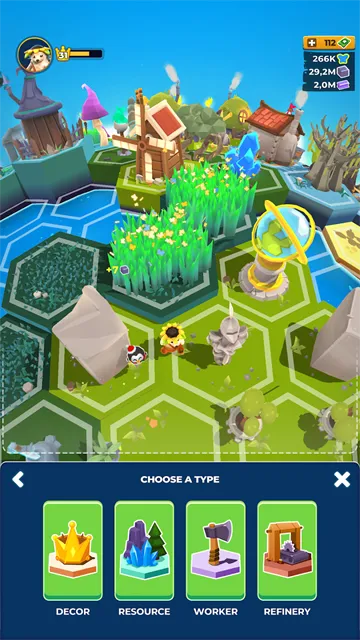 2、升级系统有趣:强大的镐可升级到八个不同级别,提高神圣生产力,收获更多资源继续建设。随着文明发展,还有机会建立工业设施,冶炼金属、加工矿物并制造另外八种武器,包括不同等级的斧头改进和独特的Excalibur剑。