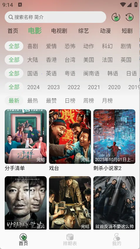 4. 功能超便捷:不仅能在线流畅观看,还支持投屏至电视大屏观影;提供排期表可查看更新内容,点击分类能筛选感兴趣类型,搜索功能可快速找想看的内容,播放界面方便下载与管理影片。