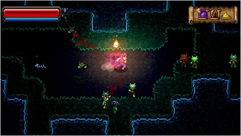 1、采用复古像素画面,以暗色系为主色调,营造神秘压迫的地下城氛围,提升视觉清晰度与沉浸感。