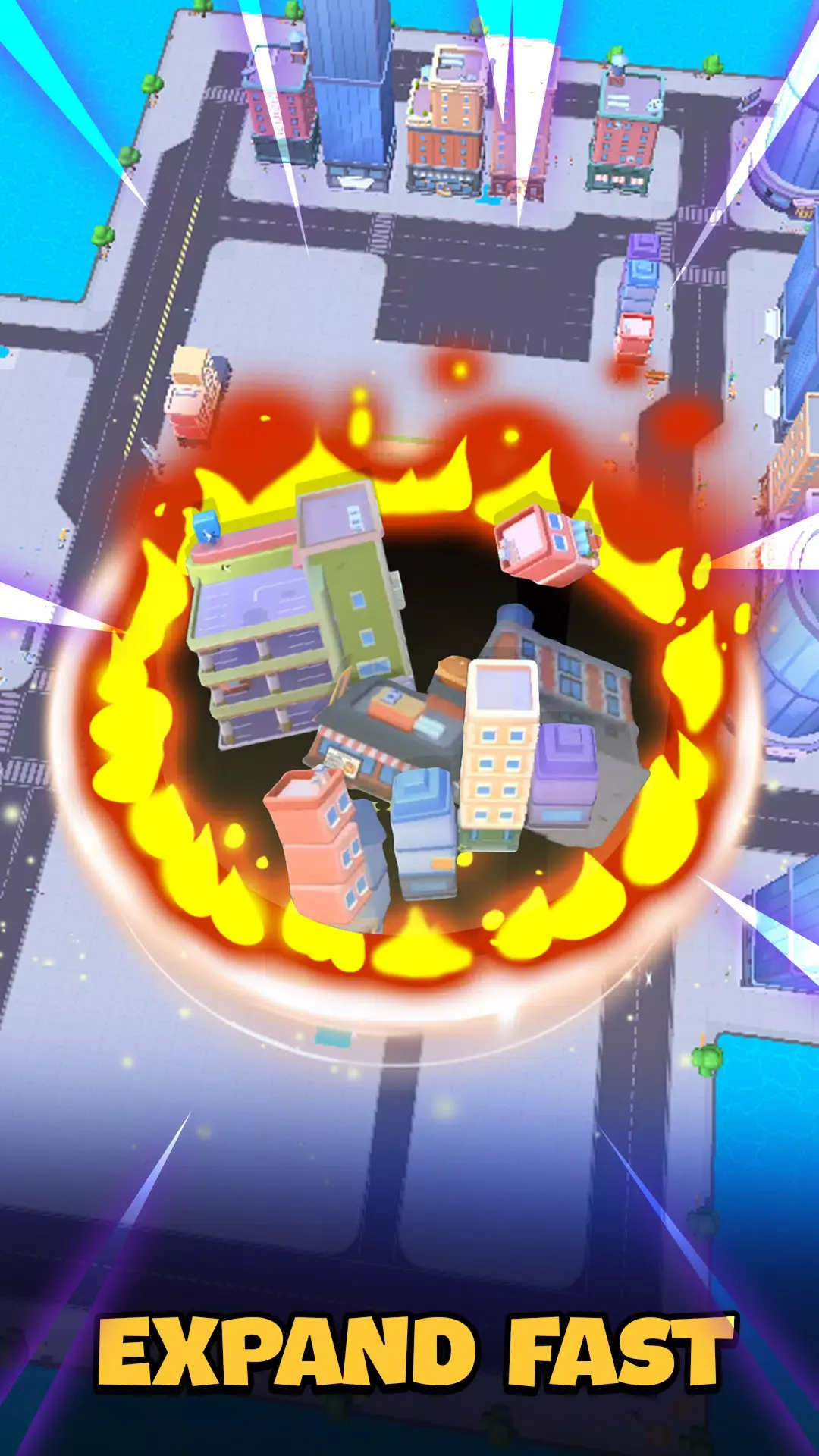 1. 玩法独特:控制神秘黑洞在地图上滑动,收集汽车、树木和建筑,通过吞噬洞穴不断壮大,装满后还能产下恐龙蛋孵化恐龙,玩法充满创意与新奇。