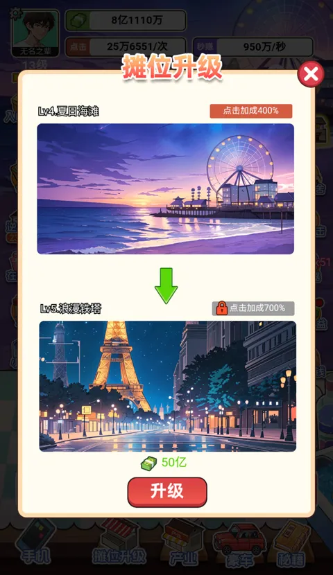 2、即便不想一直操作也无妨,升级后摊位和公司能自动赚钱,离线也不影响收益。