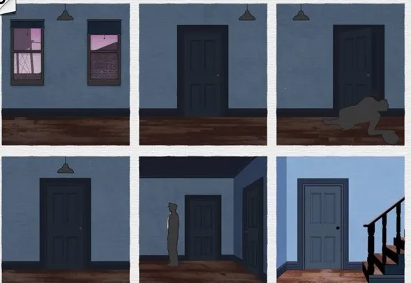 如下图所示调转图片位置,当警察开枪射击的时候,主人公飞身一跃,桌子侧翻在地挡住了子弹,主人公便可以趁此机会跳窗逃走!正字啊看小编此篇致命框架攻略的你是不是也被主人公矫健的身姿所折服!