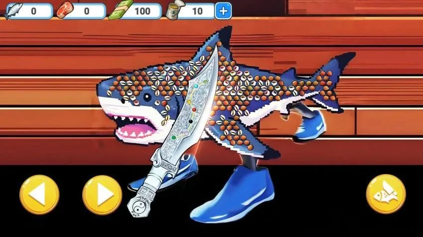 1、如图所示,在游戏界面拿起刀具就可以开始左右移动,可以启动去除鱼鳞