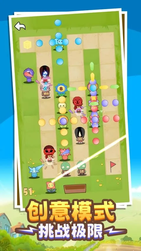 3、在花园棋盘点位上种植不同属性的植物花朵,构建更有效的基础防线。