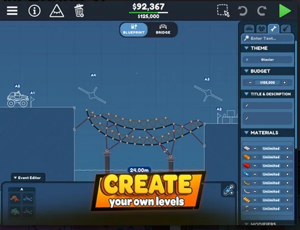 漂亮时尚艺术风格,画面精美,带来沉浸式桥梁建造体验,在建造过程中享受视觉盛宴。