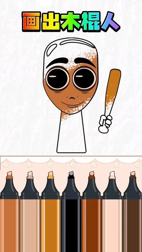 4、画出木棍人:自由添加正确的颜色,可以参考官方给出的原图立即上色,操作很简单