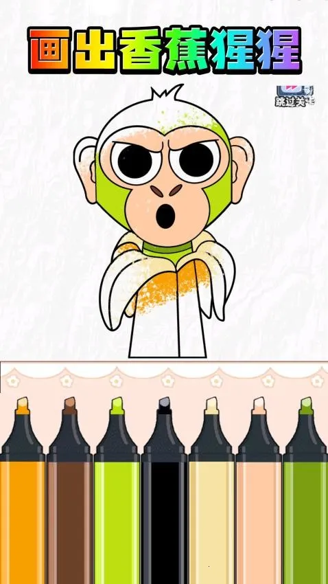 3、画出香蕉猩猩,查看原版角色的颜色,在底部区域选择适合的画笔开始上色