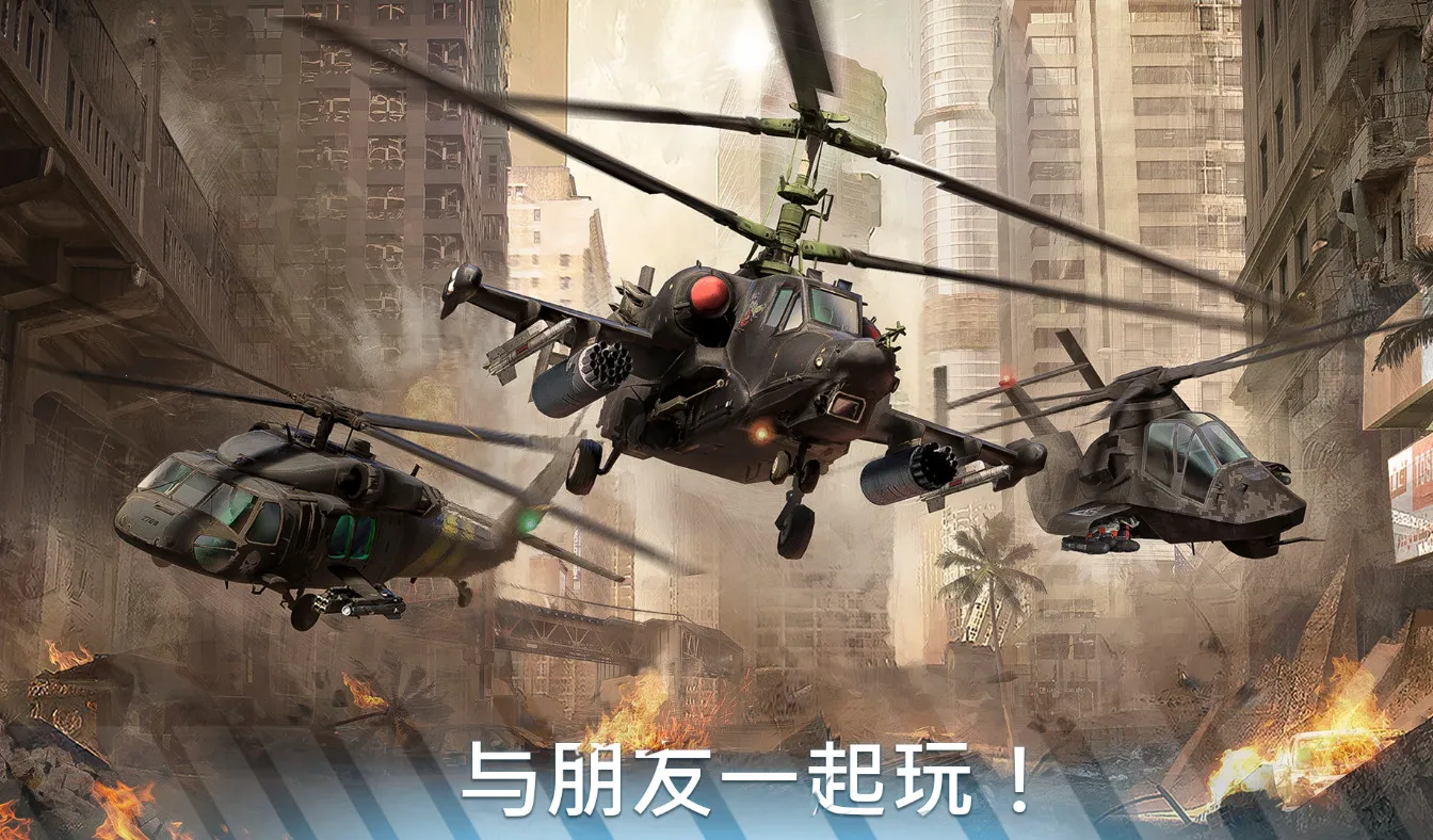 3. 支持在线和离线模式,既能与全球玩家同场对决,又能在机库收集不同型号直升机并制定作战计划。