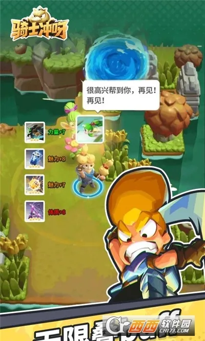 《骑士冲呀》是一款超有趣的Roguelike动作割草战斗游戏。它画风Q版萌趣,能让你自定义骑士技能属性,招揽英雄灵活搭配,装备武器道具,打造多样战斗的英雄战队。游戏关卡有多个房间,击败所有敌人才能通关。进入房间,角色靠近武器自动攻击,快速拖动屏幕可闪避,点击能施放战技。击败敌人可获局内buff奖励。每个关卡还有附加条件,达成能得更多星星,章节累计星数有额外奖励,过关解锁下一关,全通解锁下一章。这里武器多样,近百种任你自由搭配,近战远程玩法丰富。技能可叠加,局内升级三选一,无限叠加组合,构建独特流派。还有多种角色推荐,比如小美适合移动射击,菲尼克斯高配可站撸等。斗技场攻略也有,像氪佬用高配菲尼克斯站撸就行。总之,能满足你在游戏中畅快战斗、策略搭配、不断变强的需求,带来超爽的游戏体验。