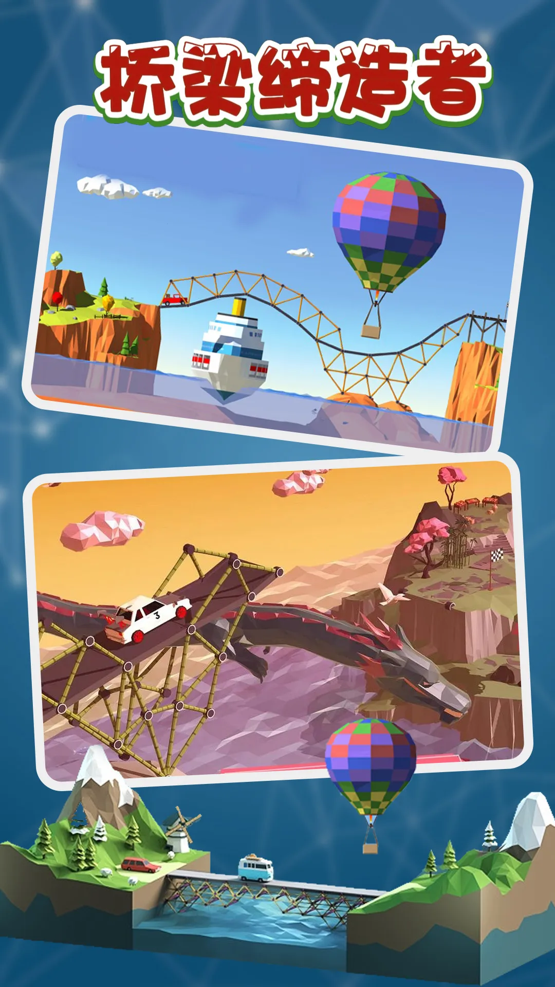 桥梁缔造者安卓版是一款趣味十足的桥梁建造手游。玩家化身工程师,用有限金币和材料造桥,要兼顾稳固与通行。海量关卡,操作简单,风格各异的桥梁等你打造,在预算与承重间找平衡,快来体验建造乐趣。