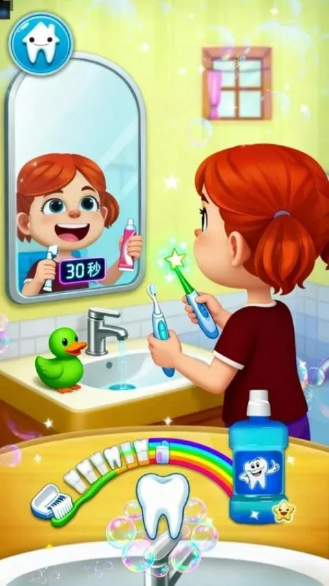 游戏采用可爱的卡通动画风格设计,还有适合孩子使用的漱口水,多样病症的病人,丰富的工具和轻松的玩法,让孩子们在游戏中学习口腔护理,收获快乐与知识。