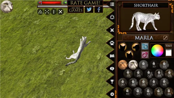 如果你想体验超刺激的猫咪模拟生活,那这款游戏绝对适合你!它能让你化身为猫,在开放世界的城市与自然环境中尽情生存探索、成长。进入游戏经验值直接拉满到99999,能快速熟悉玩法。你可以操控猫咪在超大开放地图自由奔跑,随心探索各个区域,享受无束缚的行动体验。点击特殊目标还能获大量经验,自由分配强化能力。冒险推进可解锁不同猫咪外观造型,让角色更个性。利用地图能随时查看位置,快速切换探险地点。游戏真实模拟猫咪生活,要维持健康、饥饿、口渴和精力等状态,在多样环境找食物。还有多样战斗与挑战,至少六场Boss战超刺激。家族系统与育成玩法也很有趣,能招募猫咪组成家族,抚养小猫成长。总之,能给你带来超棒的猫咪模拟体验!