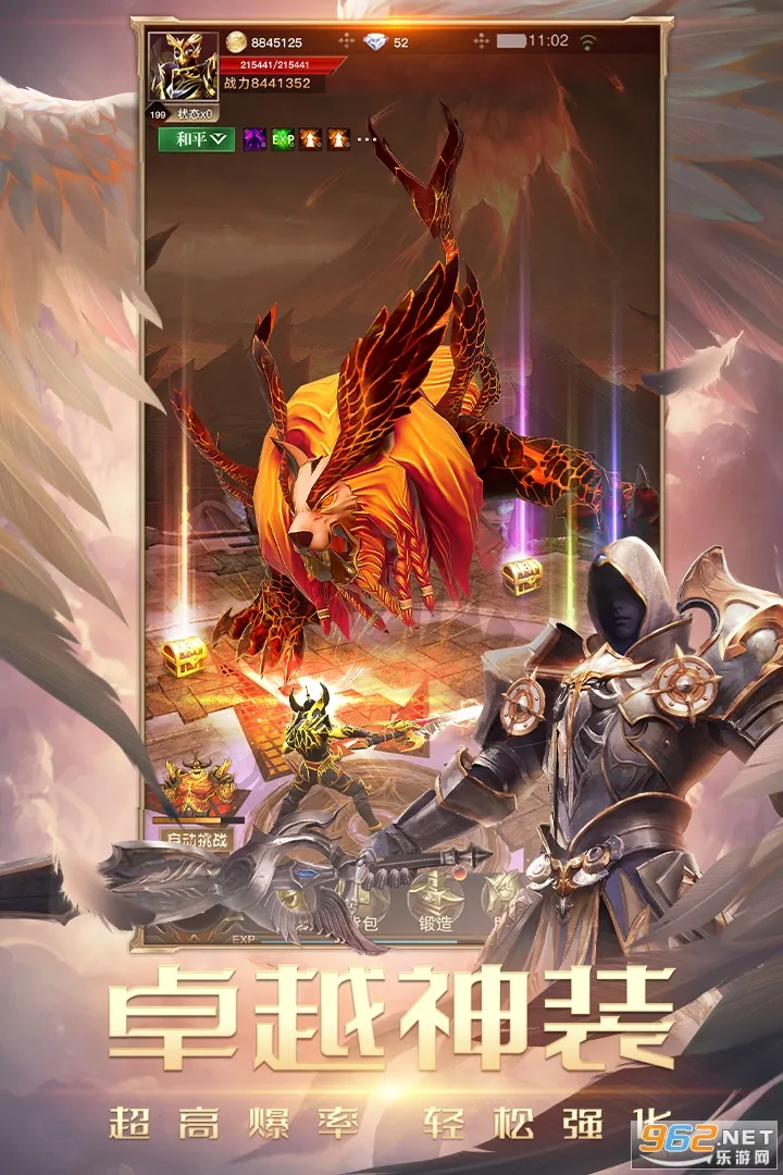 2. 多样玩法趣味十足:花式冒险,副本装备超高爆率,一键挂机,暴打BOSS,随机副本多种玩法告别单调;热血PK,野外PK、世界BOSS全服乱斗、天梯对决、公会开战等多种PVP玩法,搭配炫酷特效。