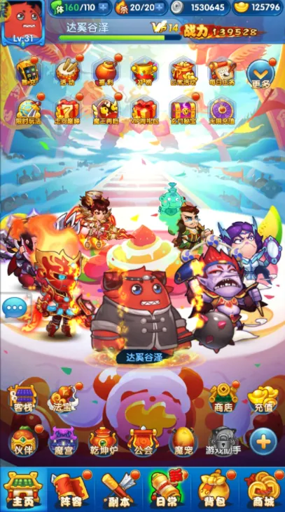 丰富福利:王母蟠桃宴送体力,玉帝迎财神送元宝;在线奖励领宝箱,开服狂欢送橙将;成长计划领全民福利,每日任务奖励多。