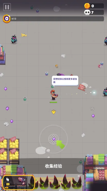 第三步,用找到的武器,杀死僵尸们,收集游戏经验