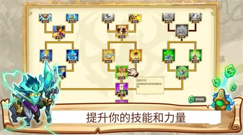 2、独特天赋系统超有趣,设有英雄、防御塔、法术三种天赋,可自定义游戏风格。
