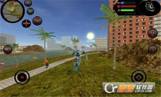 庞大真实的世界观:这是拥有庞大真实世界观的 3D 游戏,机器人能化为 3D 真实鲨鱼在水中潜行,也可变成人形在模拟真实城市行走,场景丰富。