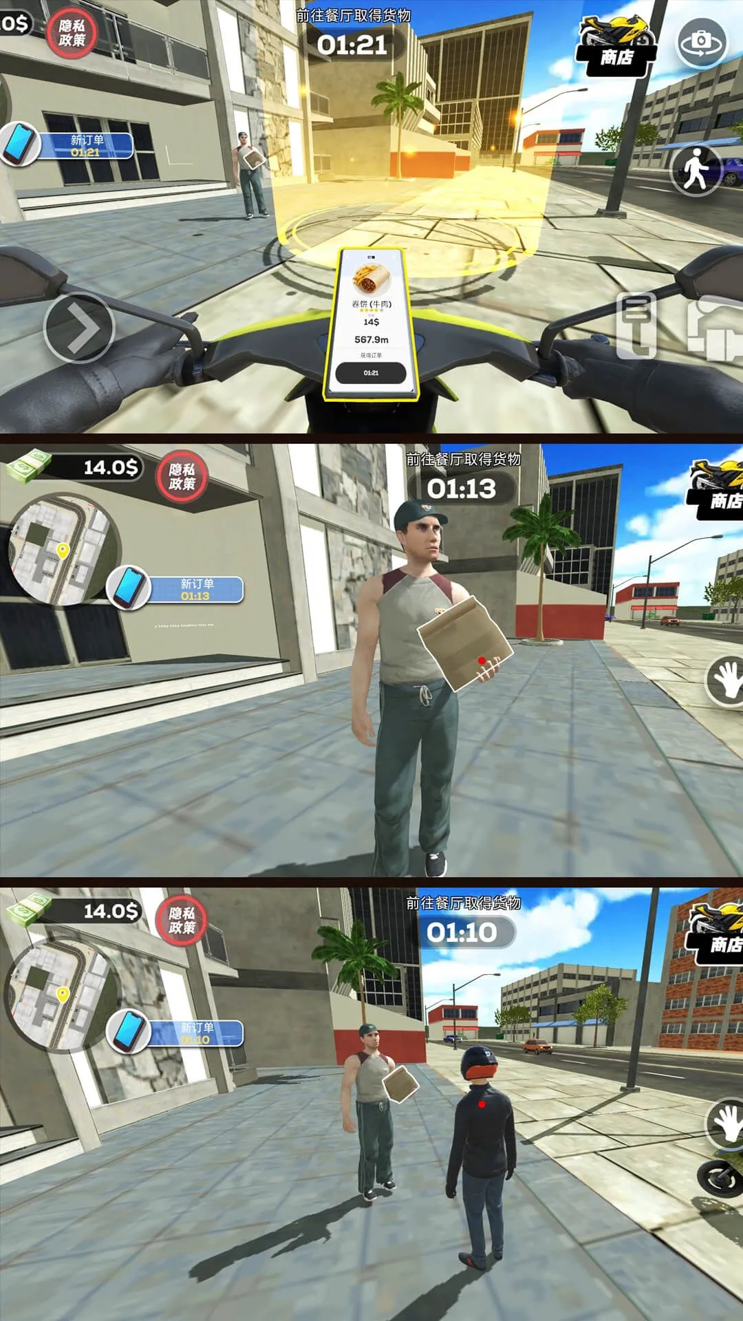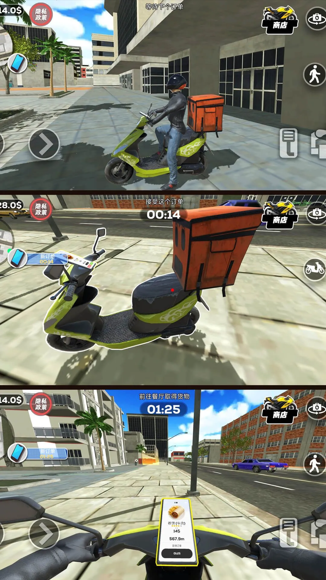 2. 超真实玩法,模拟外卖骑手日常,接单取餐、规划路线,应对突发状况。